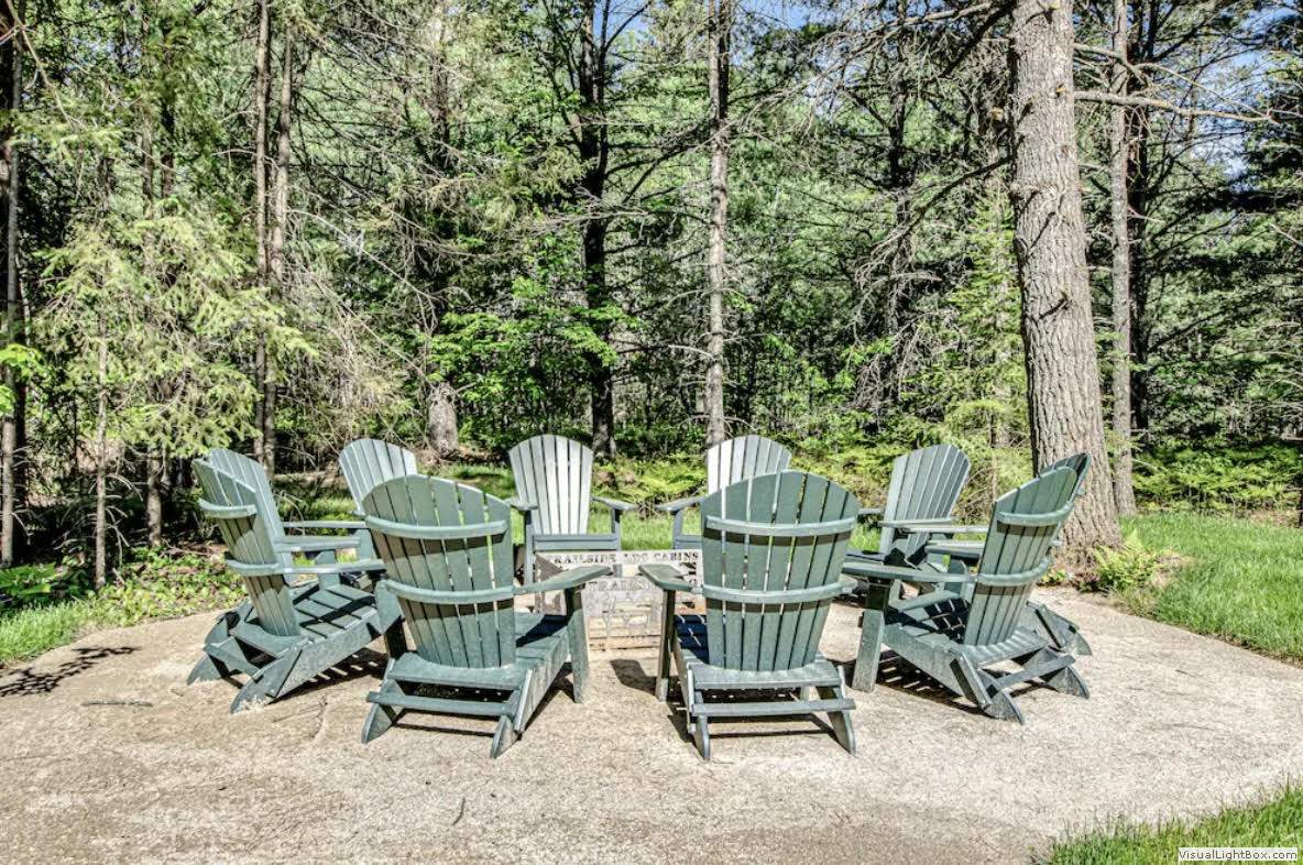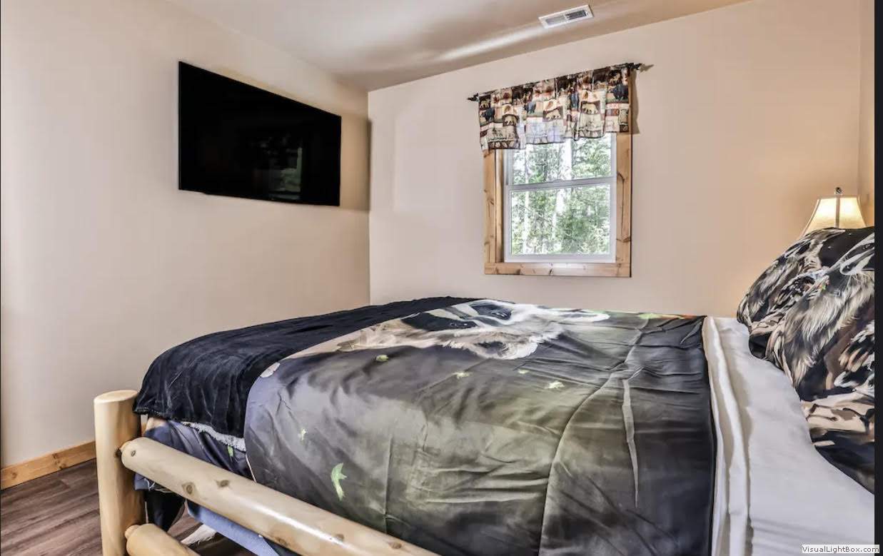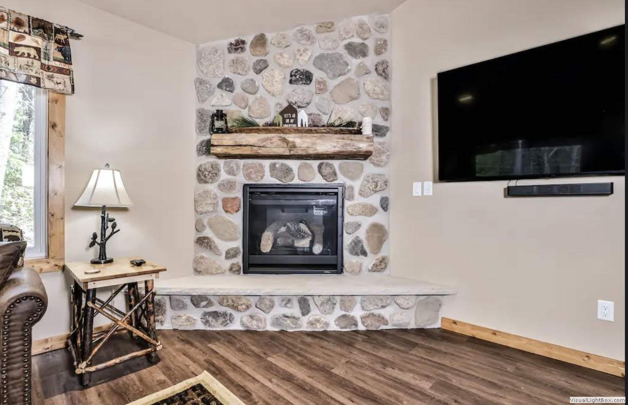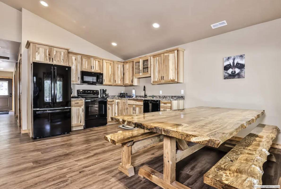 Inside either cabin, you'll find a bright interior and a cozy atmosphere throughout the well-appointed living area, blanketed in natural light. Enjoy the whimsical theme in both cabins, Raccoons in one and Deer in the other. Relax and make yourself at home by resting on the plush furniture, streaming a movie marathon on the large TV, or curling up with a good book by the crackling fire in the grand stone fireplace. The open-concept floor plan was designed with togetherness in mind so that no conversation would be lost here. Create culinary charms and outdoor adventures snacks in the sophisticated eat-in kitchen, equipped with brand-new appliances, ample cupboard room, and a formal dining table. Host barbecues, serve cocktails, or sip your morning coffee on the patio while listening to the tranquil sounds of nature.