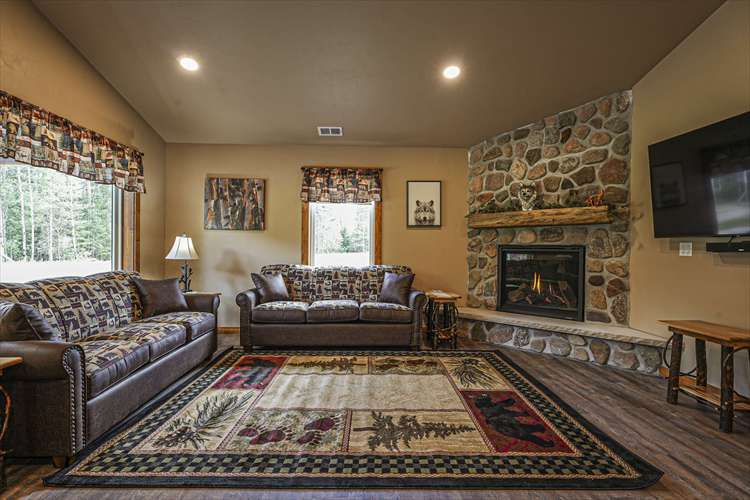This log cabin rental is perfectly located on the snowmobile and UTV trail, outdoor enthusiasts who love to go fast and explore will find this area like their own perfect playground. Renting boats, UTVs, and snowmobiles is easy through the RV and Powersports Rentals on-site rental company. For group and family fun, check out Pirates Hideaway, Riverview Park, Eagle Falls Adventure Golf & Laser Tag, and the scenic Star Lake Hiking Trail, all within 12 miles of your door.